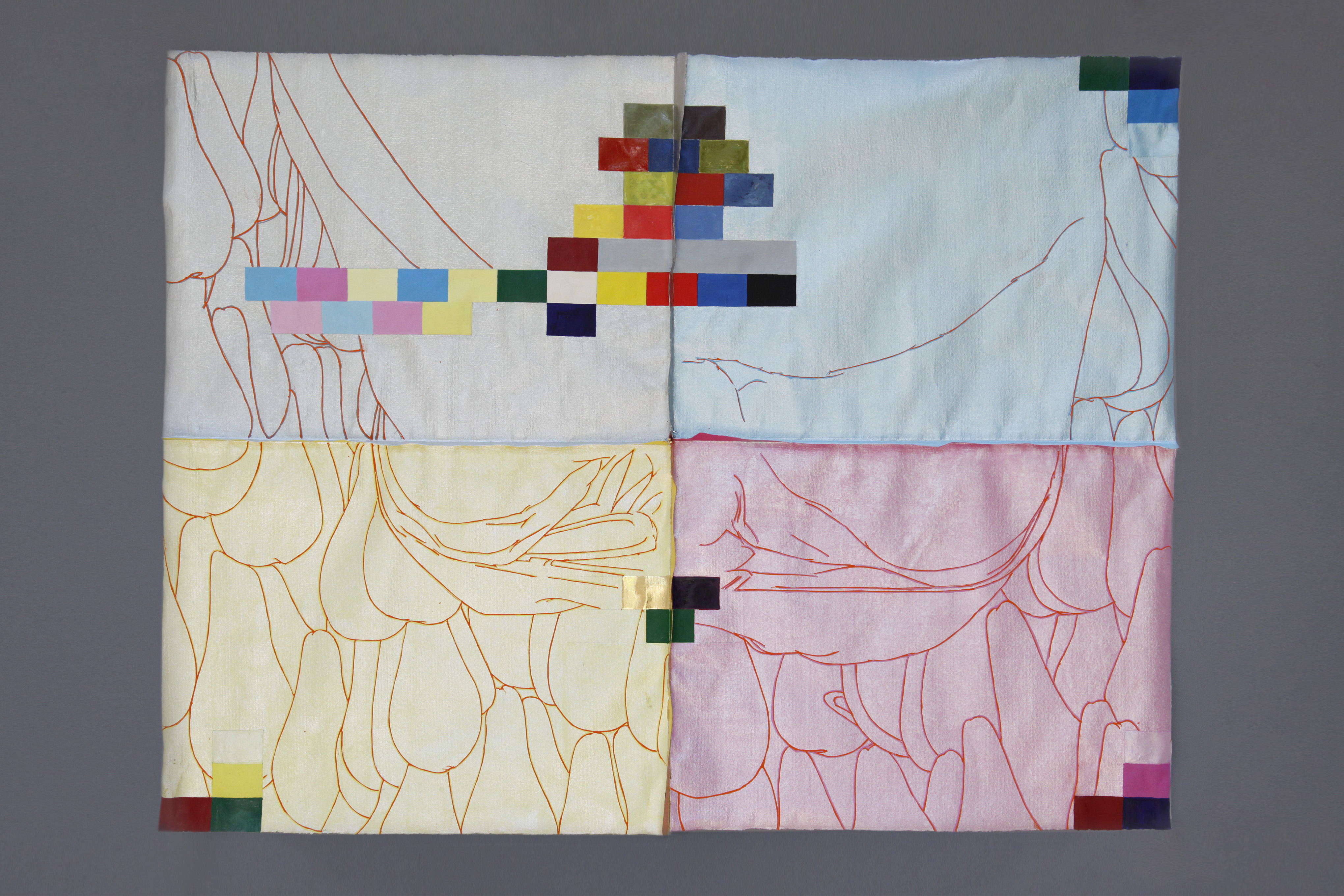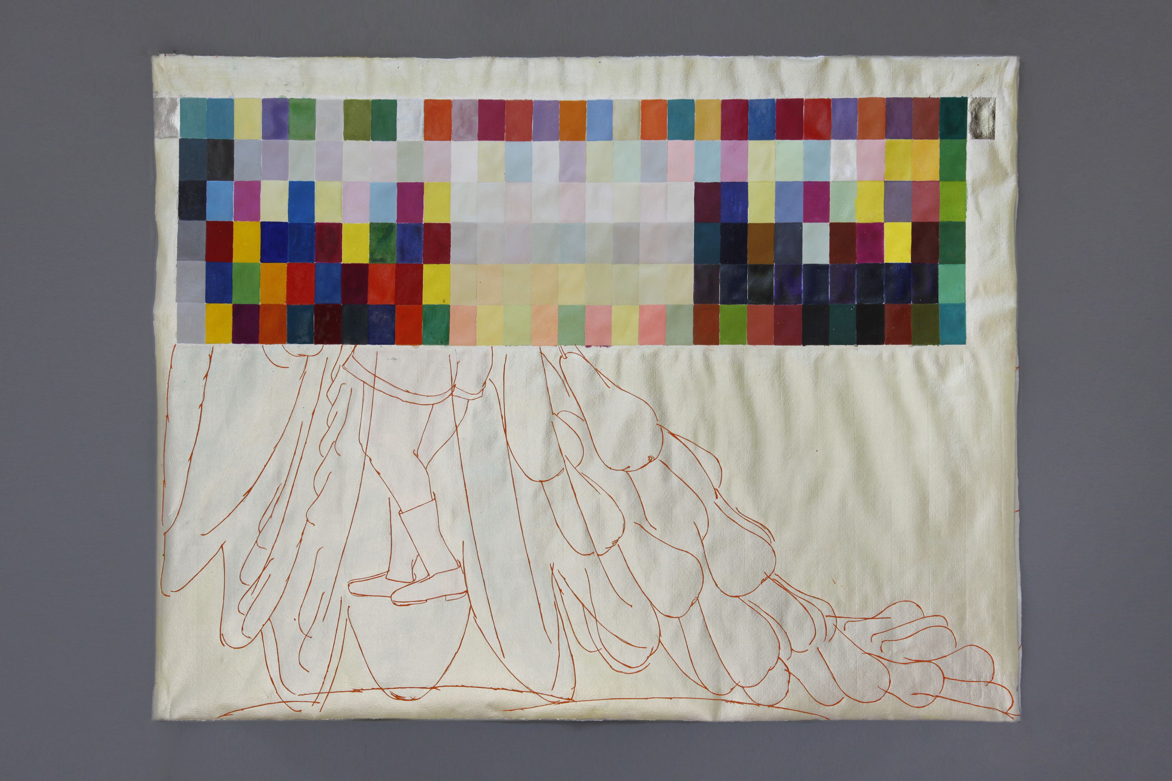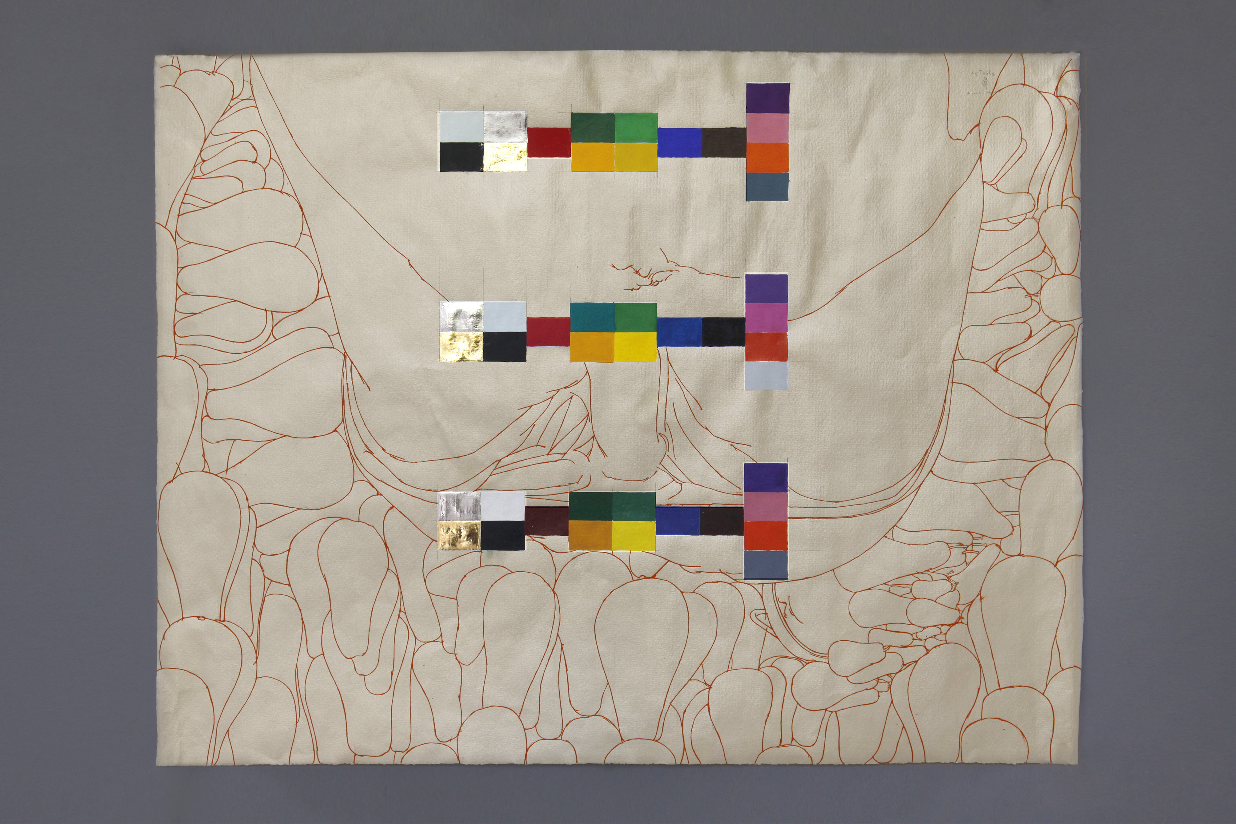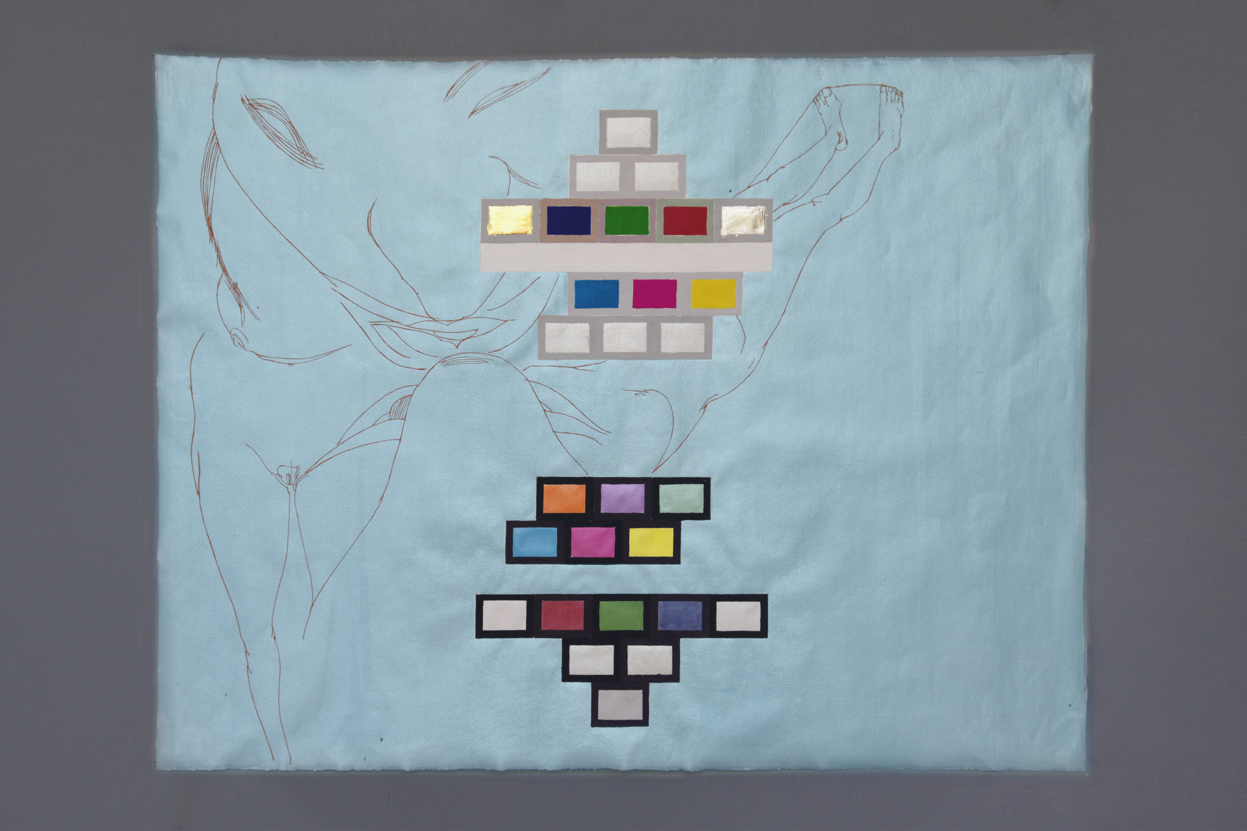 Pencil, egg tempera, acrylic ink, gold leaf, palladium, silver, copper- and aluminium folio on ingres paper (120 grams)