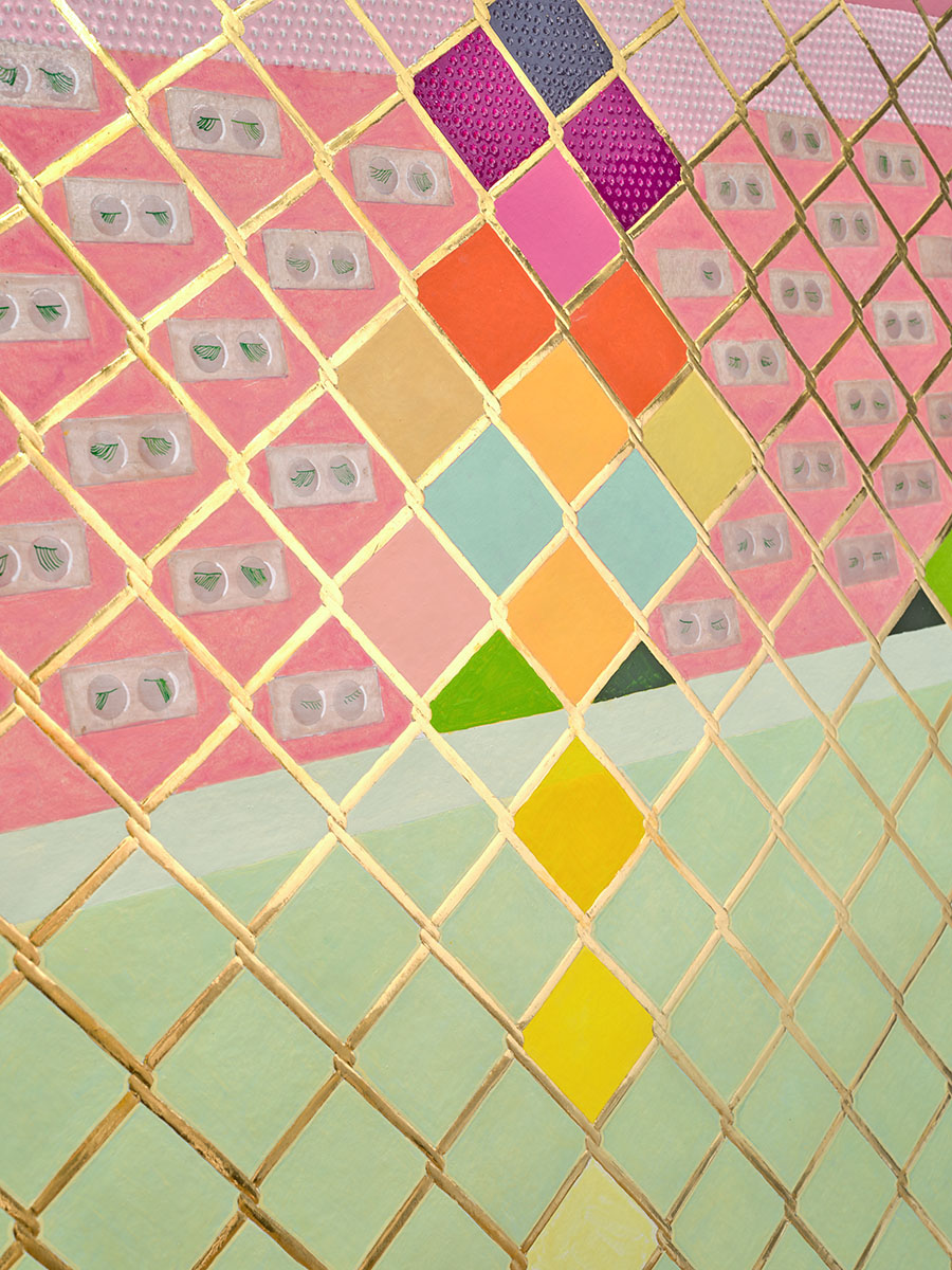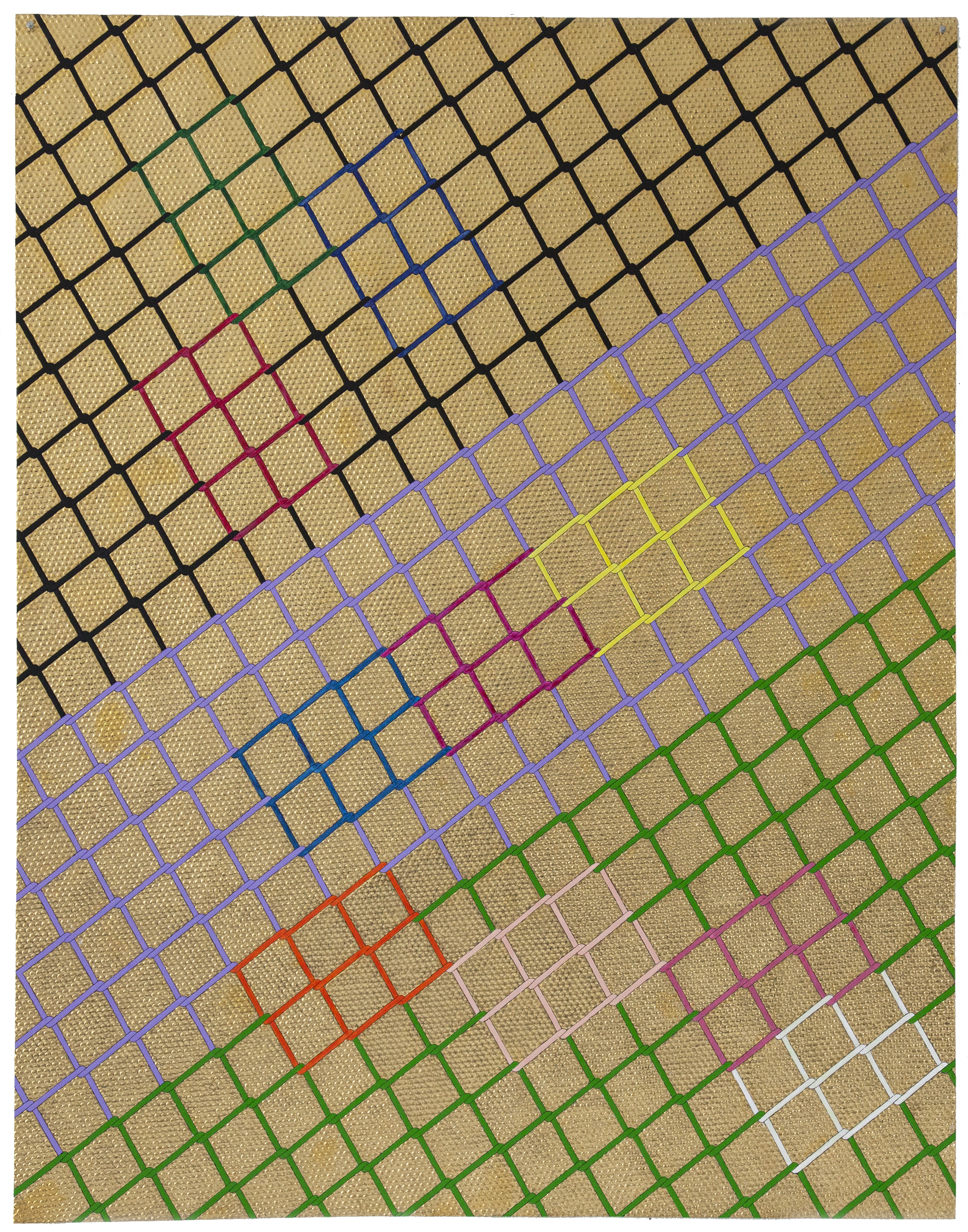 Crayon, egg tempera and gold leaf on paper (220 grams)