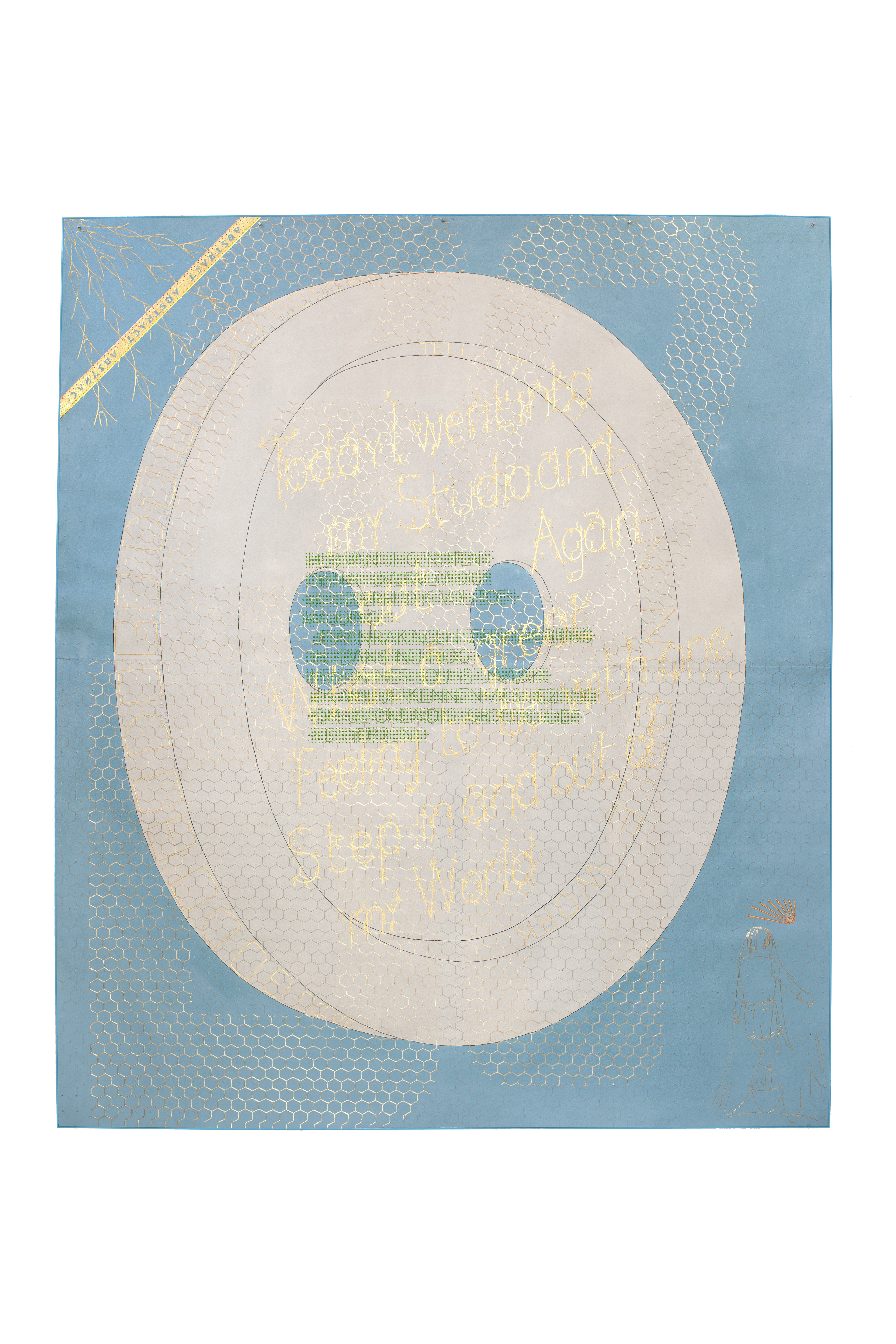 Coloured pencil, egg tempera, gold leaf, palladium and platina on paper (600 grams)