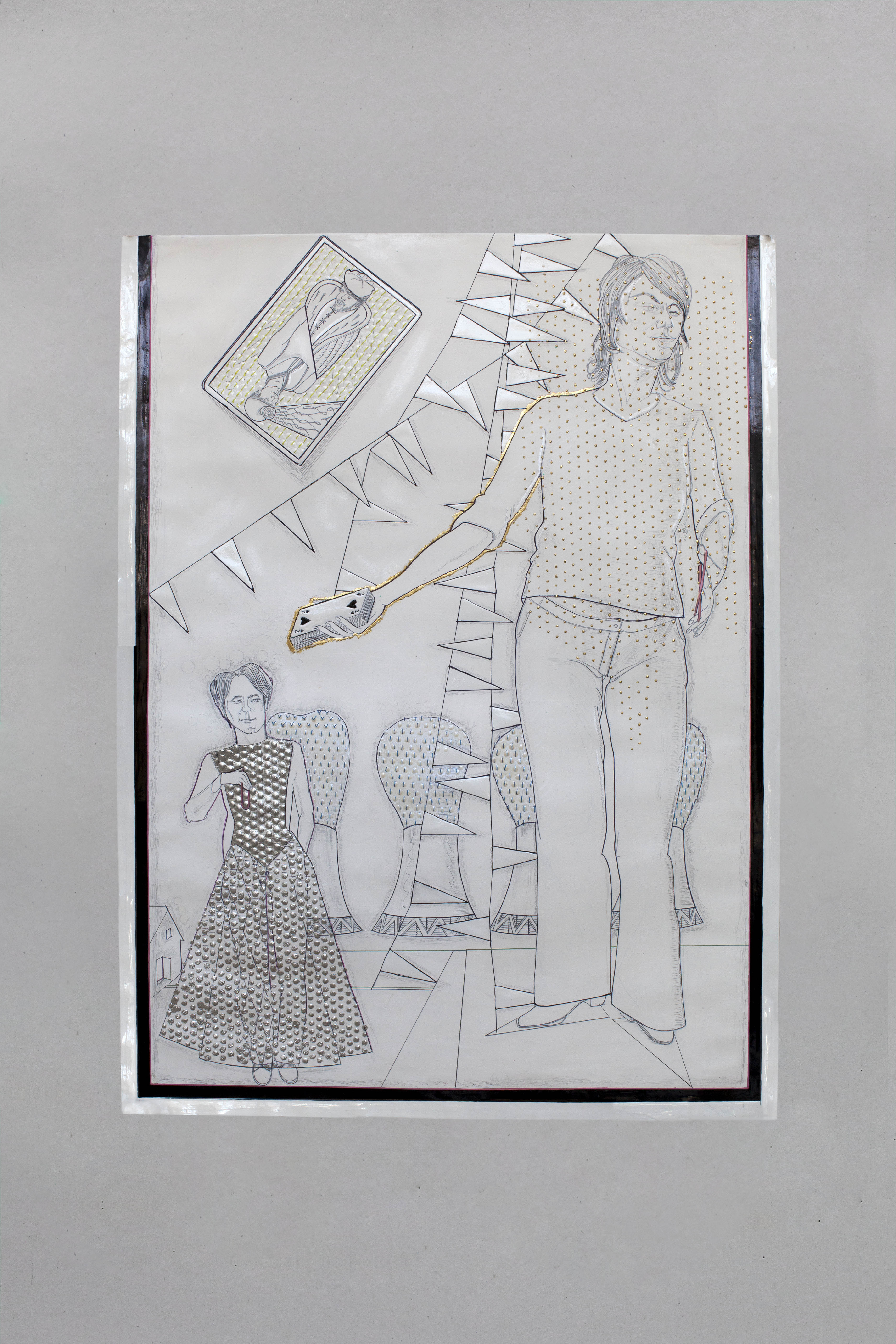 Pencil, egg tempera, acrylic ink, gold leaf, palladium, silver, copper- and aluminium folio on paper (200 grams)
